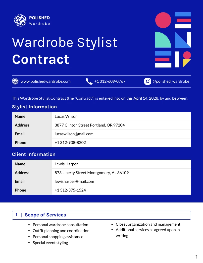 Wardrobe Stylist Stylist Contract Template Venngage