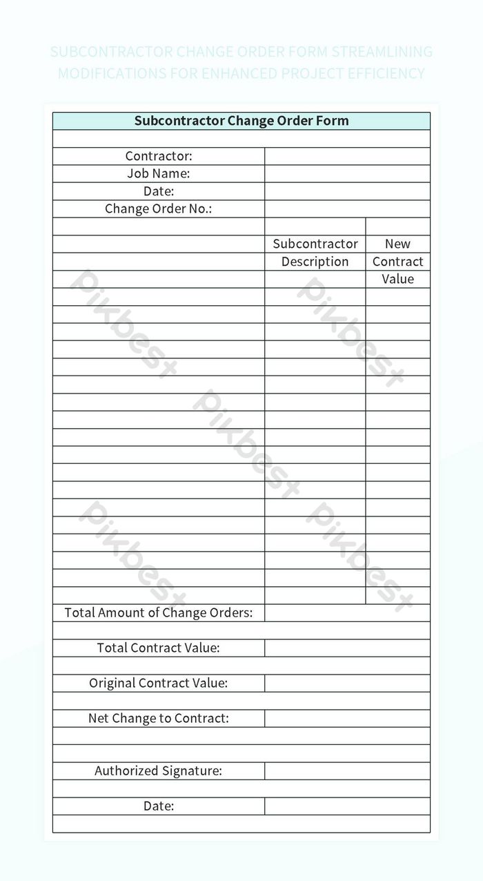 Subcontractor Change Order Form Streamlining Modifications For Enhanced