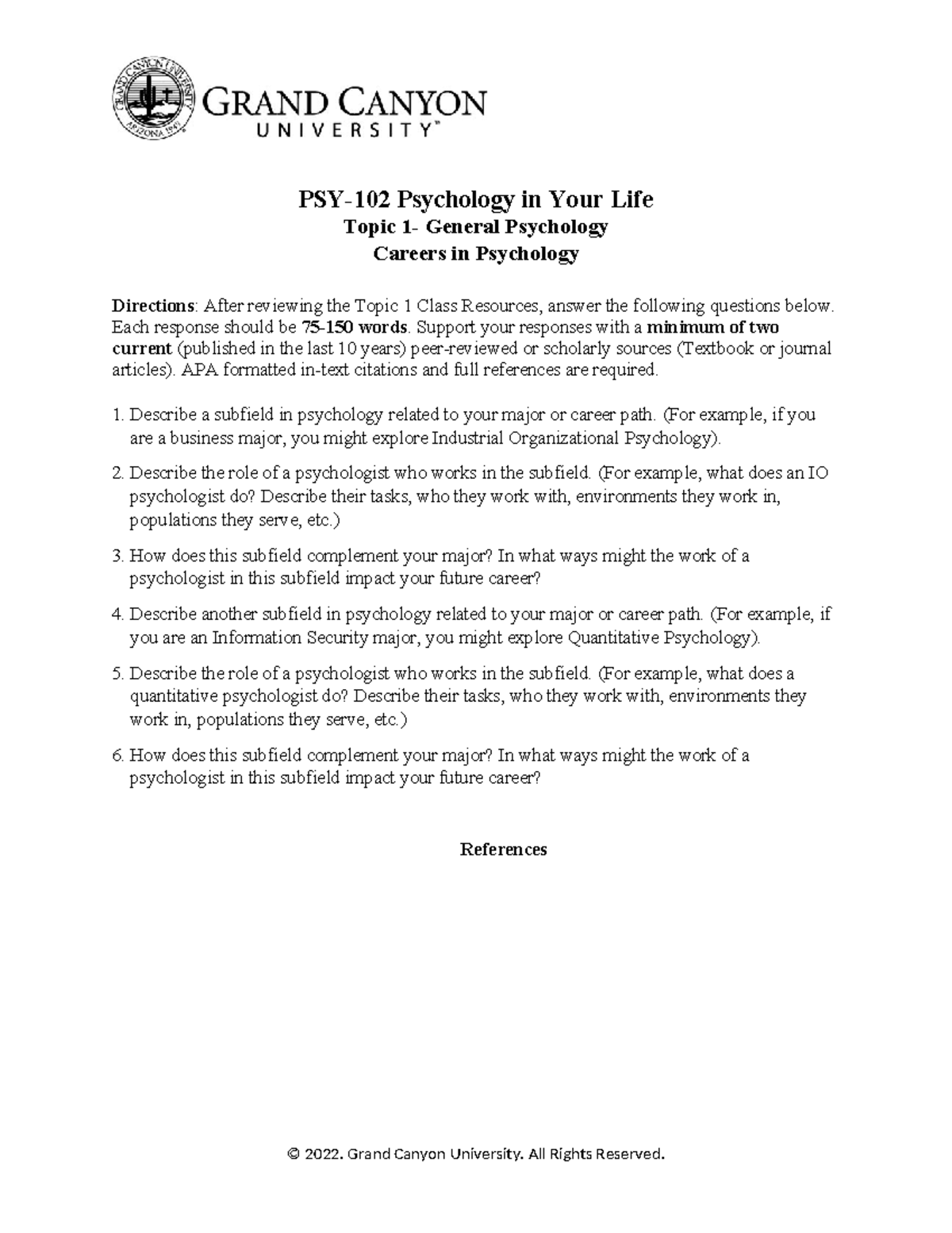 PSY 102 Careers in Psychology Worksheet on Subfields and Roles Studocu