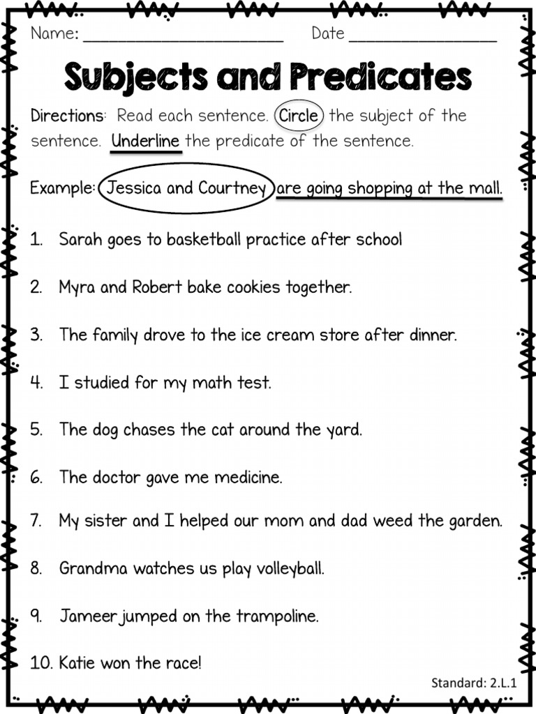 Free Printable Subject And Predicate Worksheets Worksheets Master