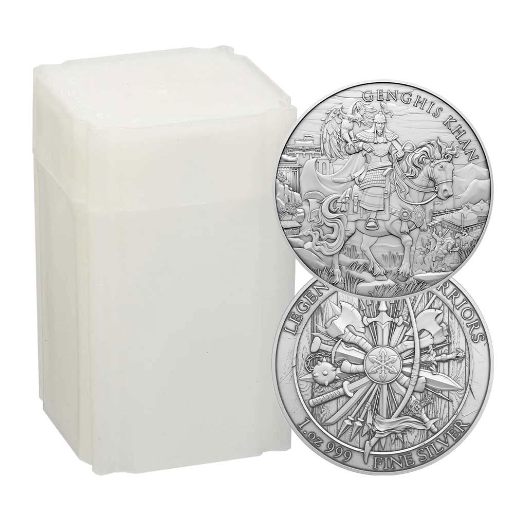 Roll of 20 1 Troy oz Genghis Khan Design 999 Fine Silver Round