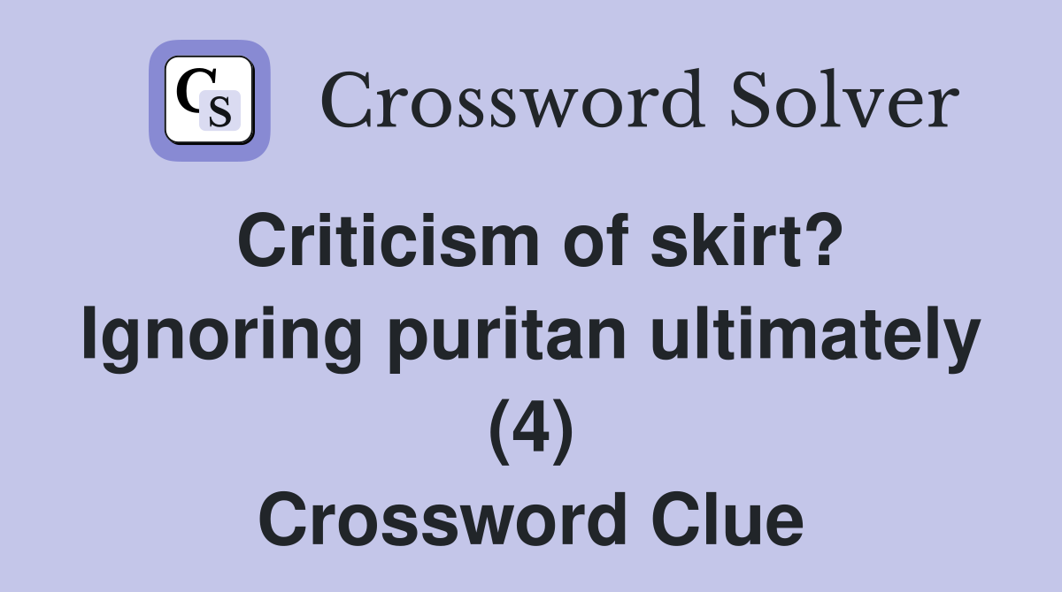 Criticism of skirt? Ignoring puritan ultimately (4) Crossword Clue