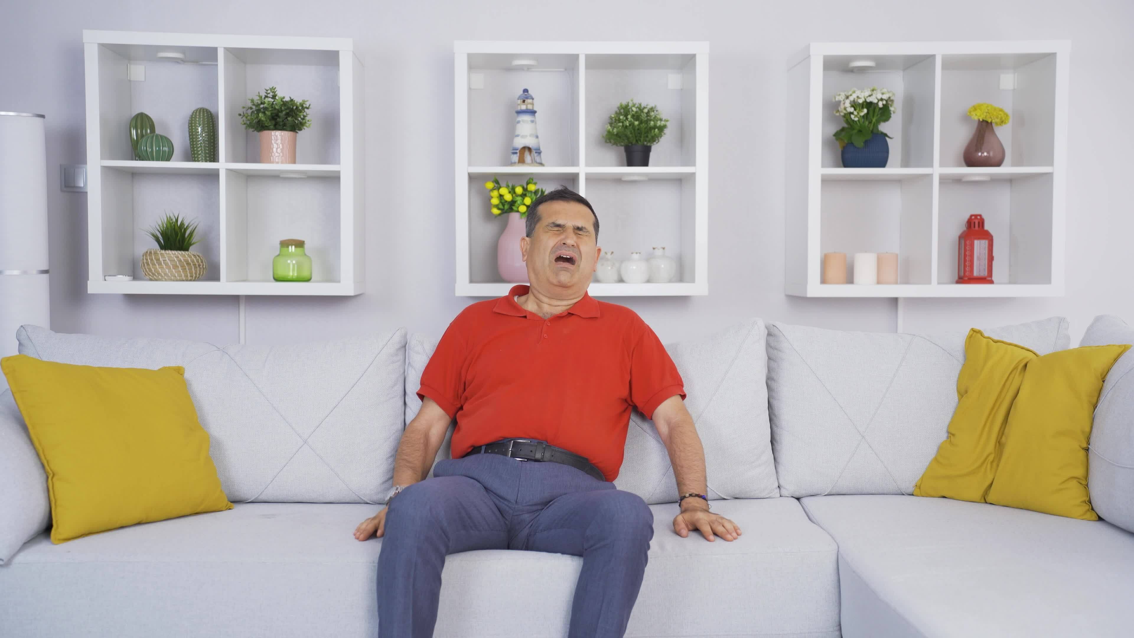 Old man with sudden mood swings The old man is sad and happy 33572837