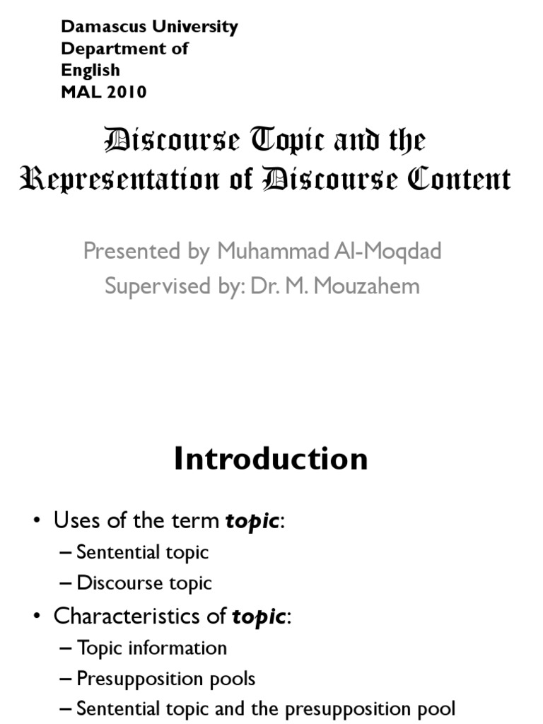 Topic 1 Defining Discourse PDF Discourse Analysis