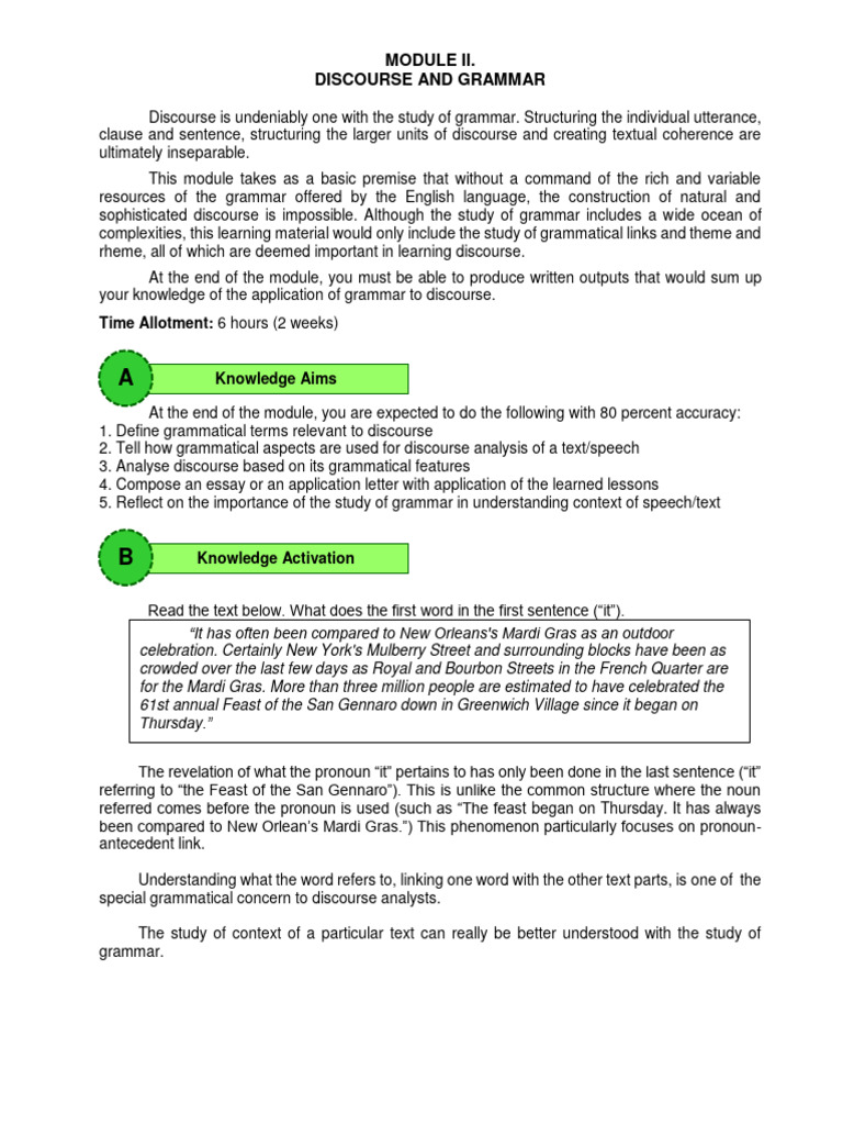 Discourse Module 2 PDF Subject (Grammar) Verb