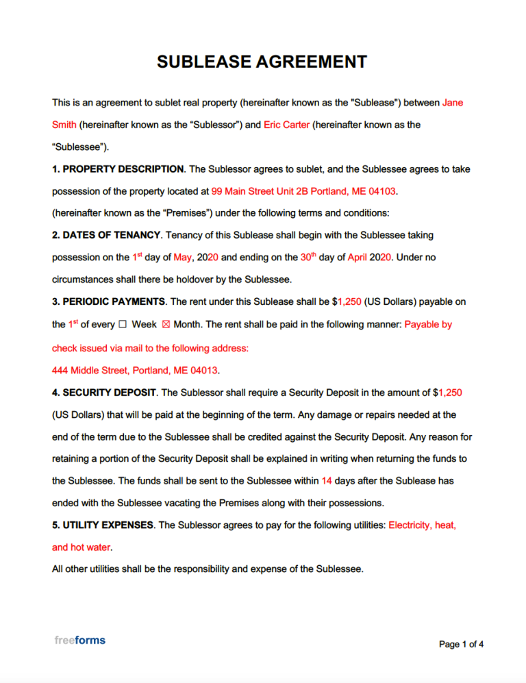 Create a Sublease Agreement Free Sublease Contract PDF Word