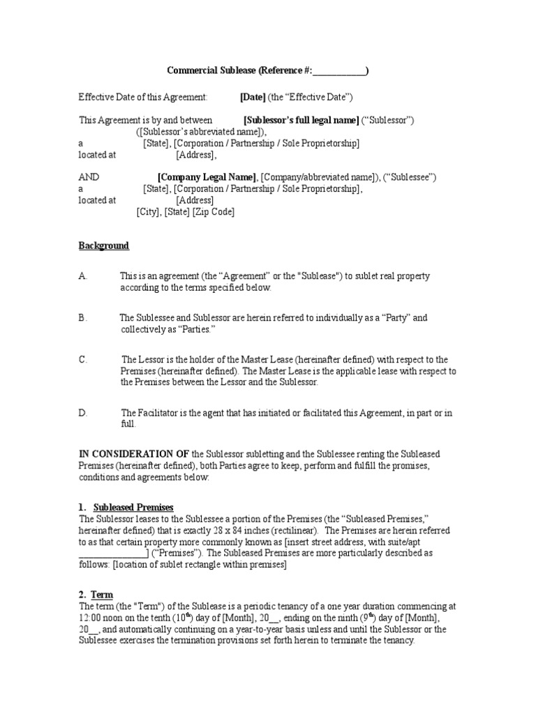 39 Free Commercial Sublease Agreement Templates Word PDF