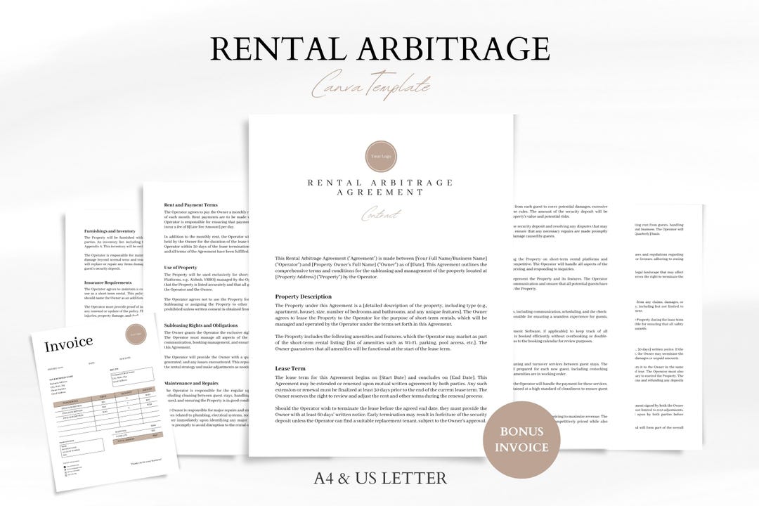 Editable Rental Arbitrage Agreement Canva Template Professional