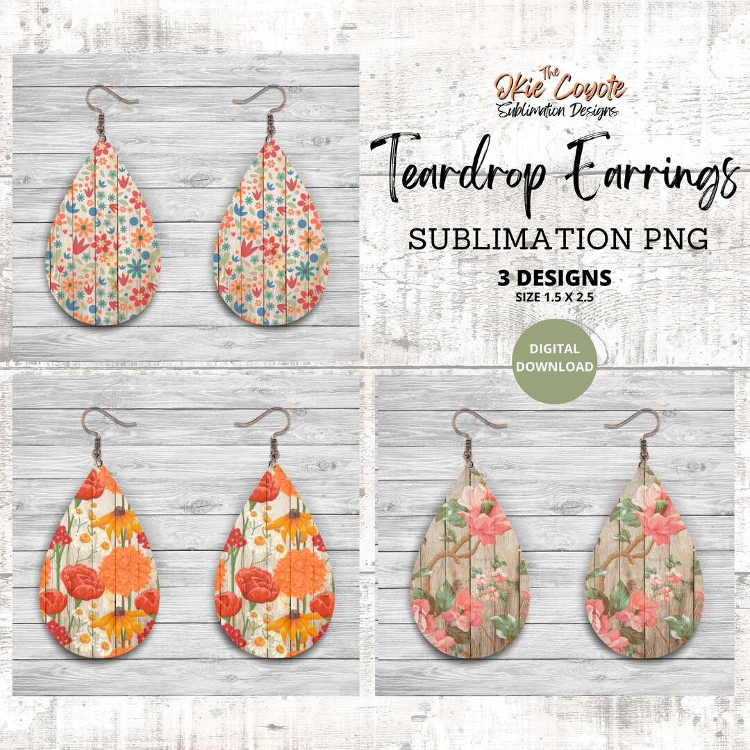 Teardrop Earring Sublimation Template PNG Digital Download Etsy