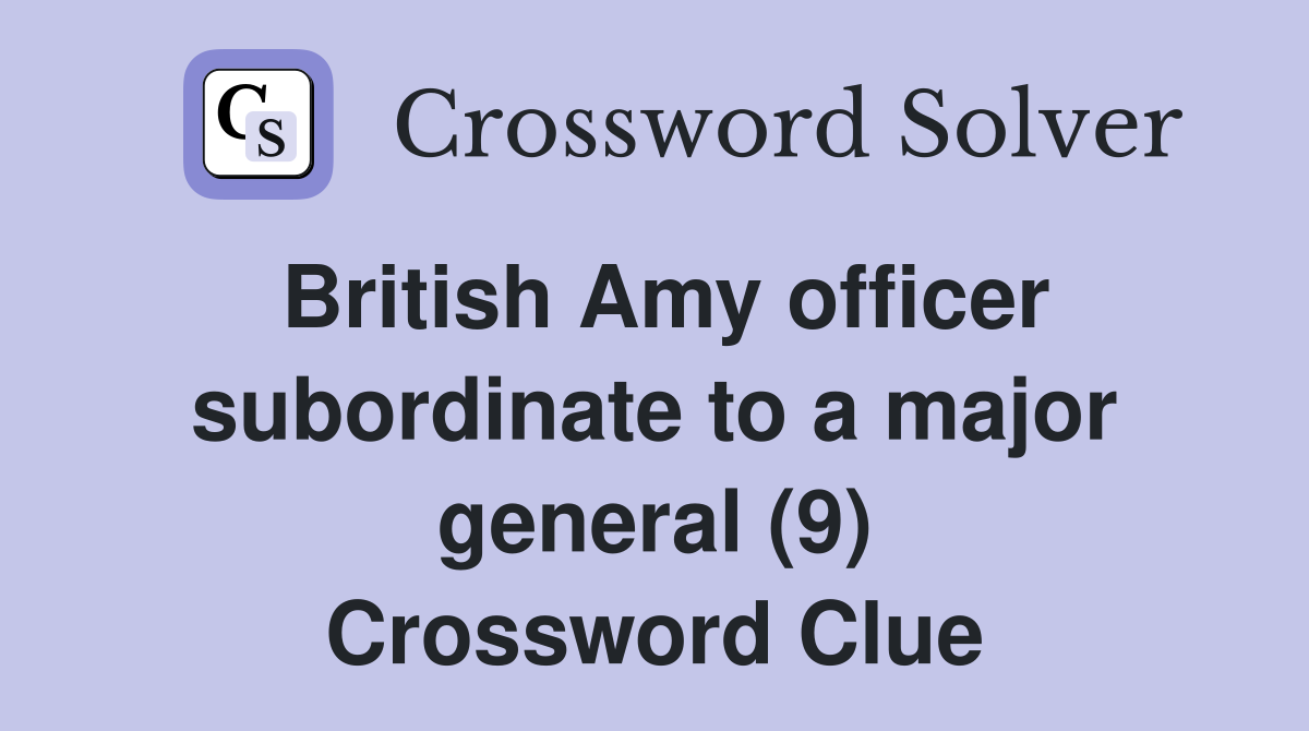 British Amy officer subordinate to a major general (9) Crossword Clue