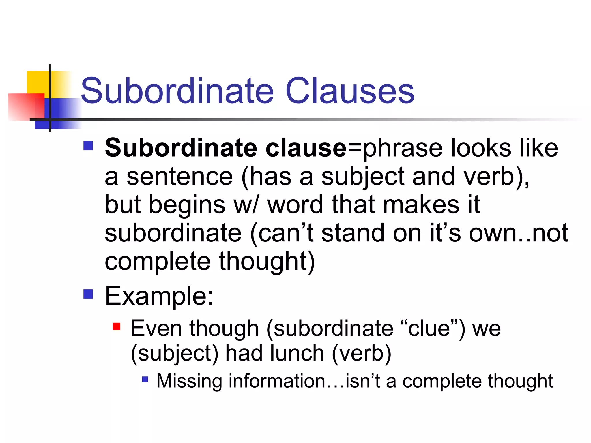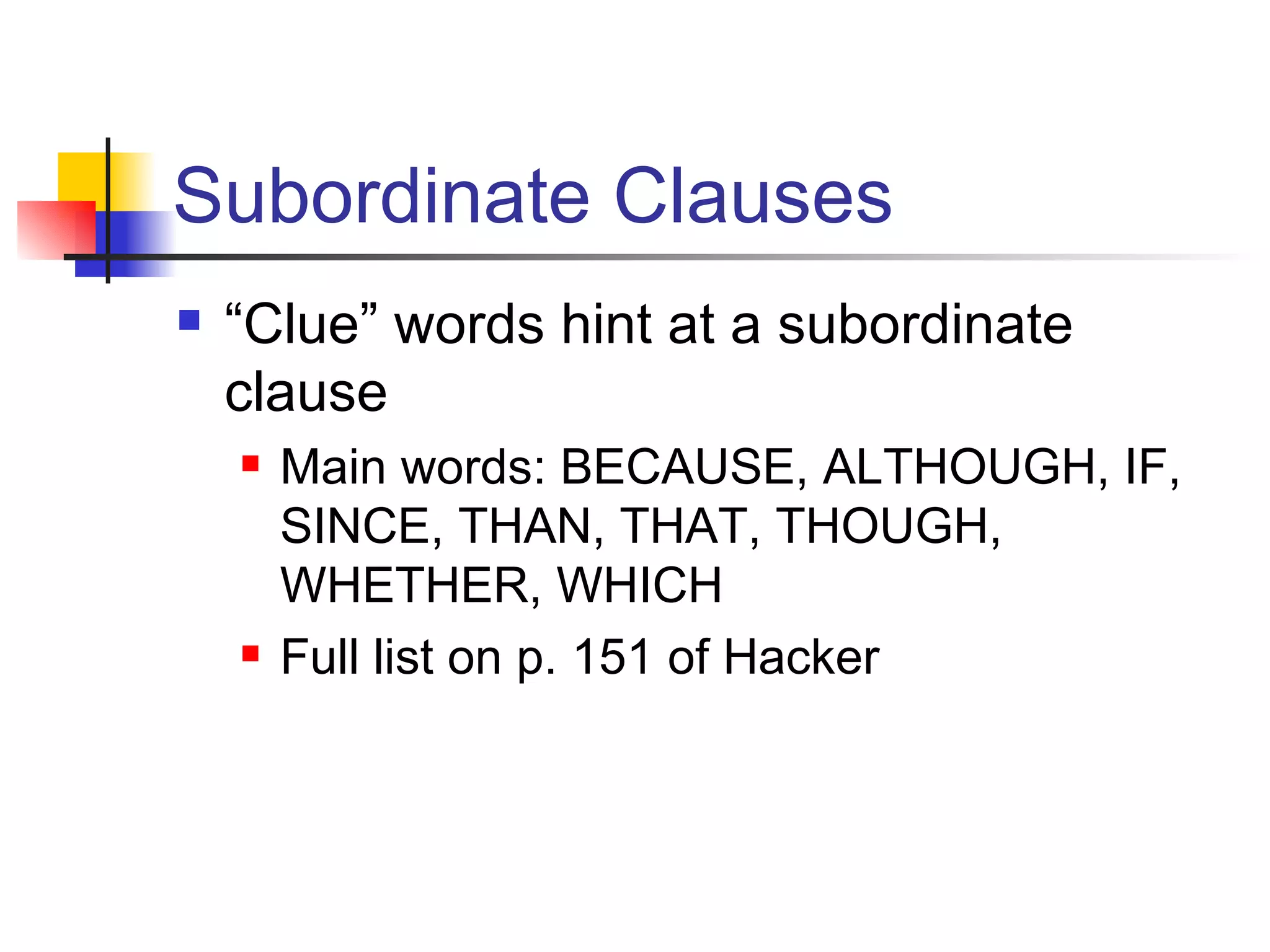 Subordinate Clause Word Examples