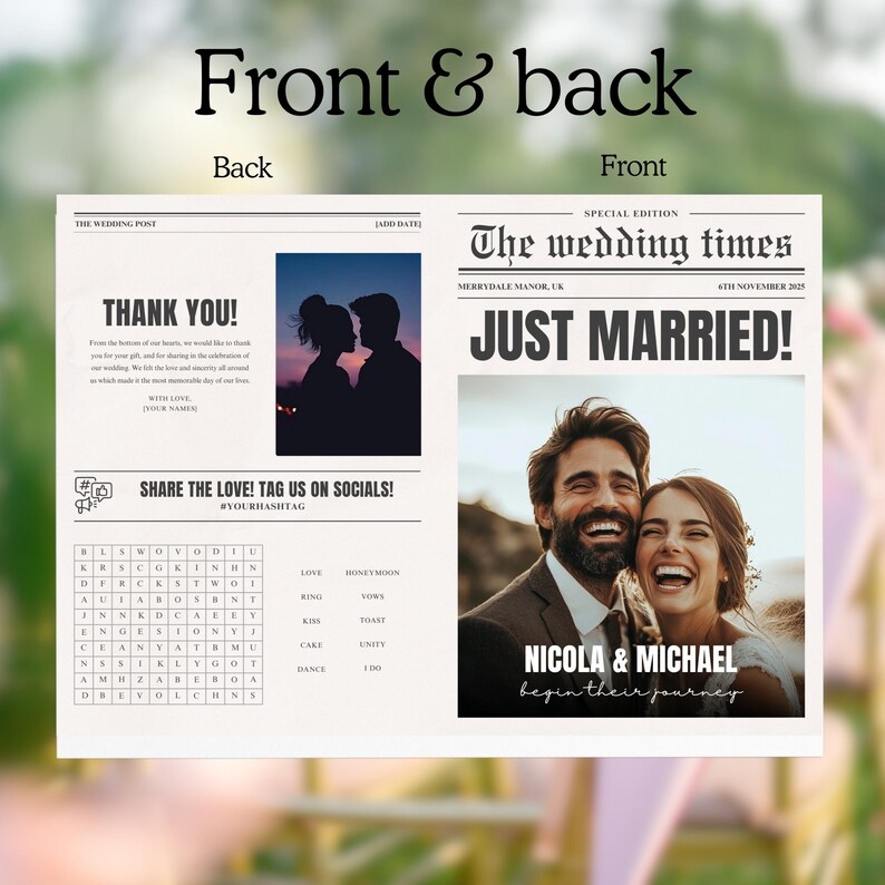 Personalised Wedding Newspaper Template With Photo Custom Wedding