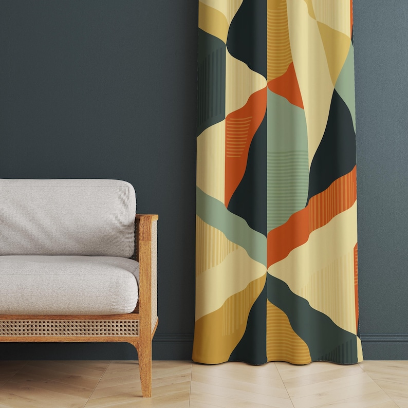 Mid century Modern Curtain Panel: Abstract Geometric 70s Style Custom
