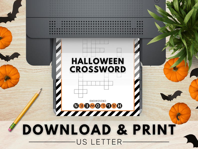 Halloween Crossword Puzzle Game Printable With Answer Sheet Halloween
