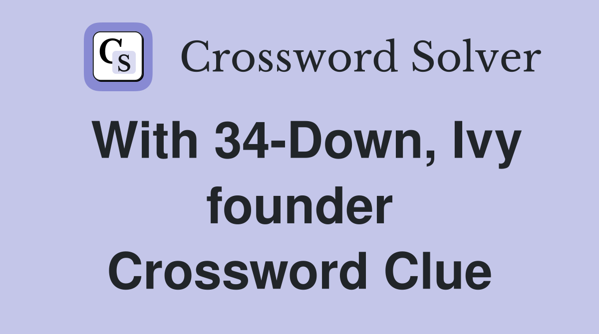With 34 Down Ivy founder Crossword Clue Answers Crossword Solver