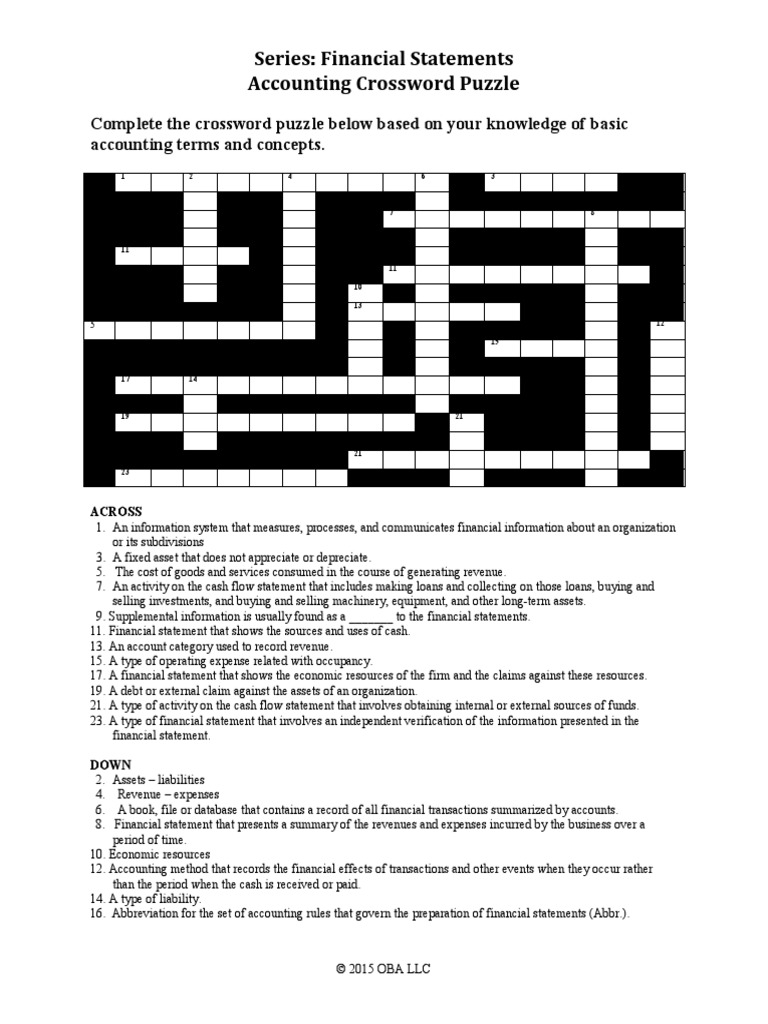 1 Accounting Crossword 3 PDF Financial Statement Expense