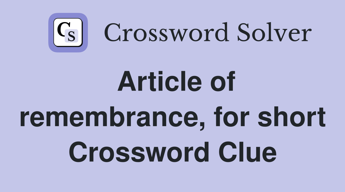 Article of remembrance for short Crossword Clue Answers Crossword
