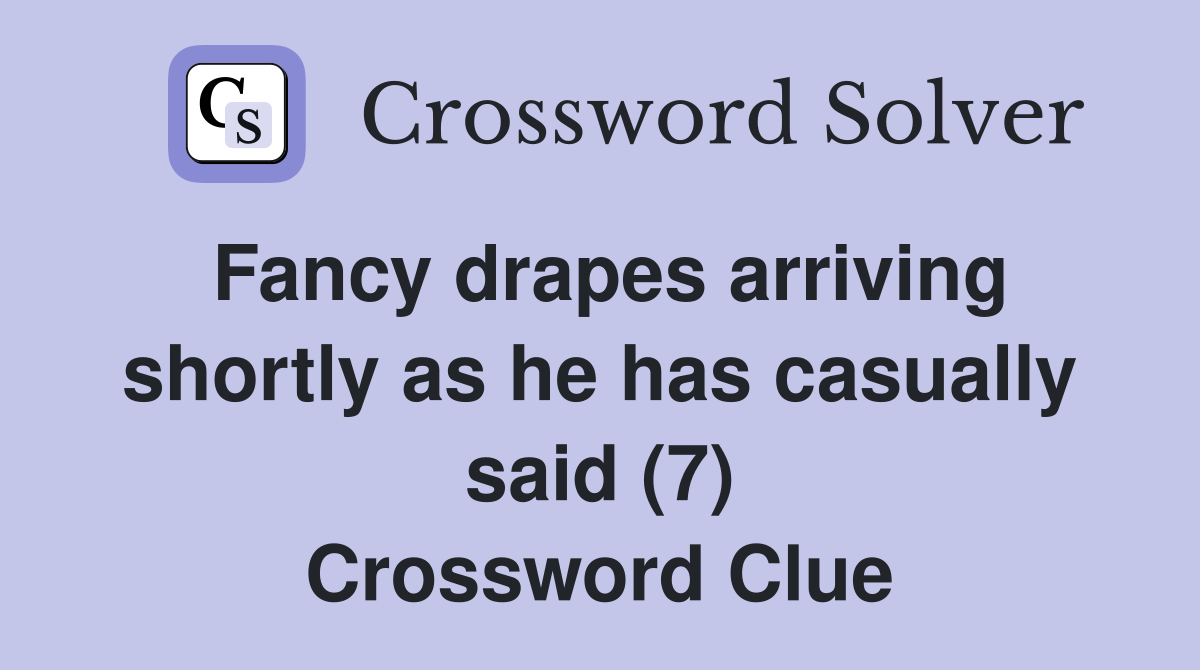 Fancy drapes arriving shortly as he has casually said (7) Crossword