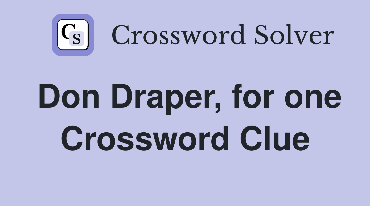 Don Draper for one Crossword Clue Answers Crossword Solver