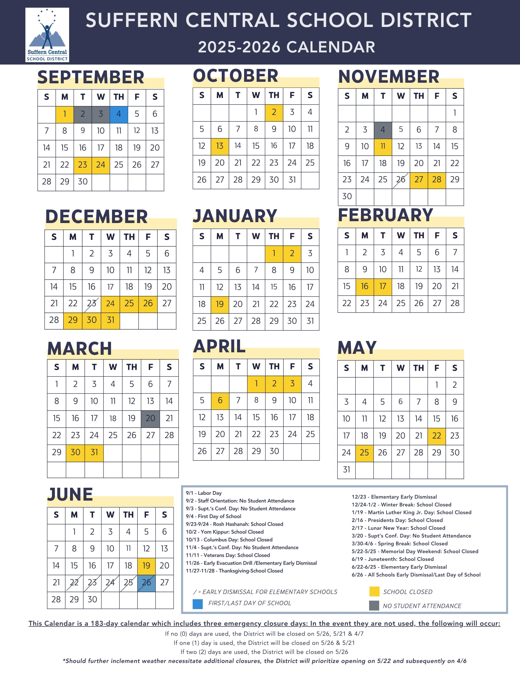 Suffern Central School District Calendar 25 26 PDF Revised EduCounty