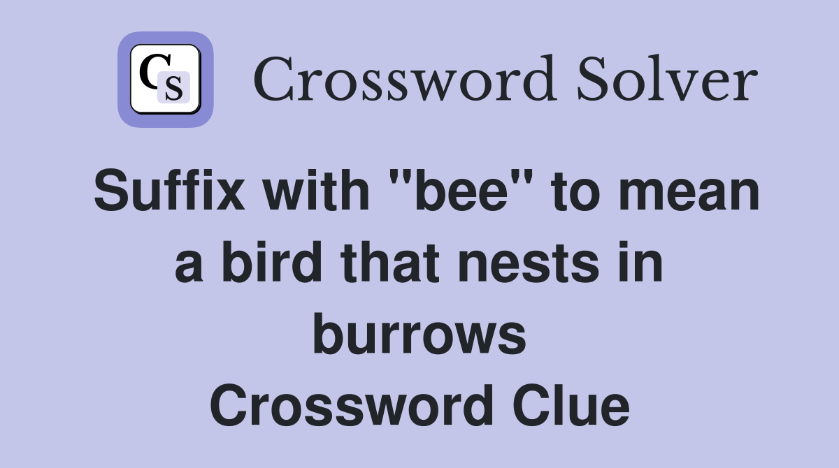 Suffix with quot bee quot to mean a bird that nests in burrows Crossword Clue