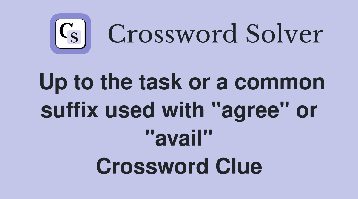 Up to the task or a common suffix used with quot agree quot or quot avail