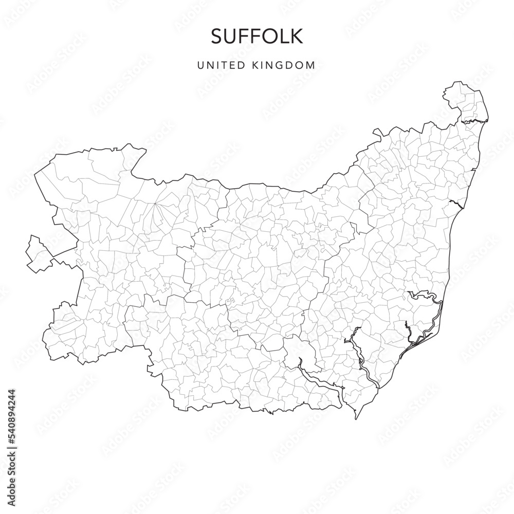 Administrative Map of Suffolk with County Districts and Civil Parishes