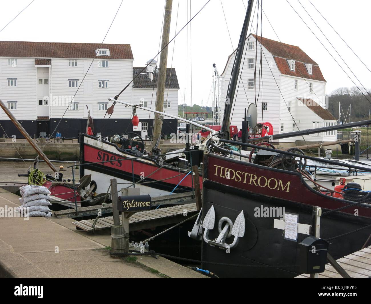 Woodbridge in Suffolk: view of fishing boats at the quayside and the