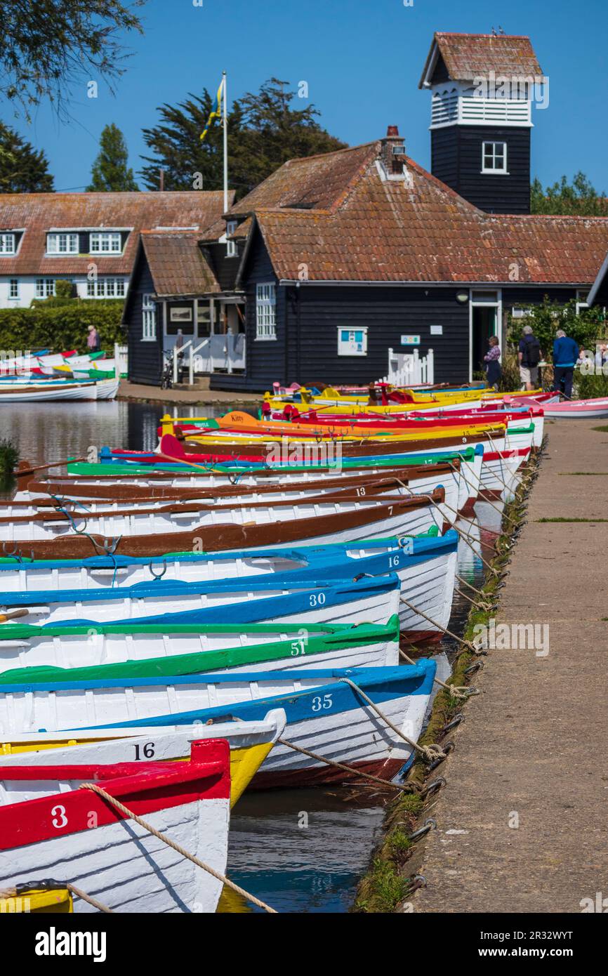 Bright and Colourful Rowing Boats on The Meare at Thorpeness in East