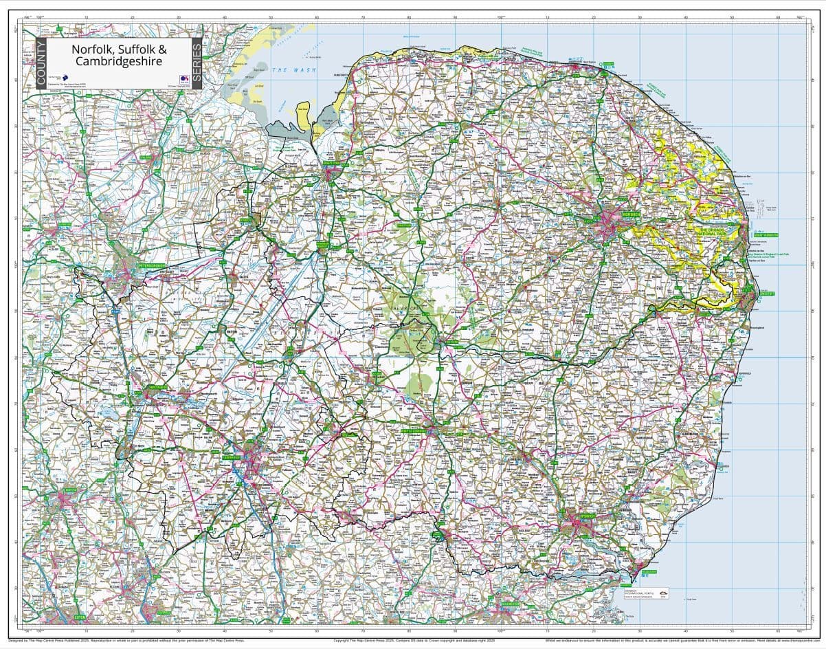 County Map of Norfolk Suffolk Cambridgeshire Special Sheet 2025