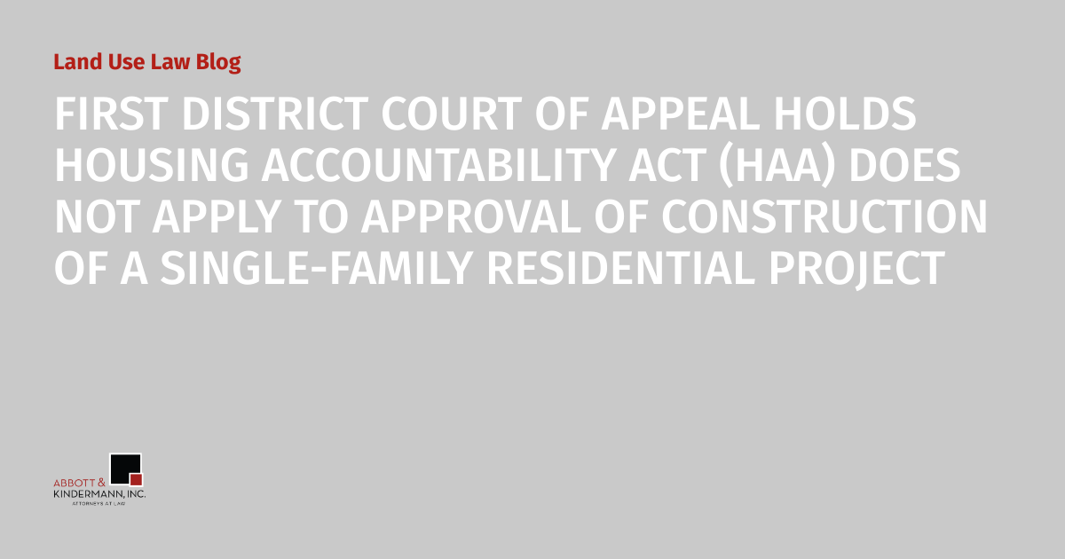 FIRST DISTRICT COURT OF APPEAL HOLDS HOUSING ACCOUNTABILITY ACT (HAA