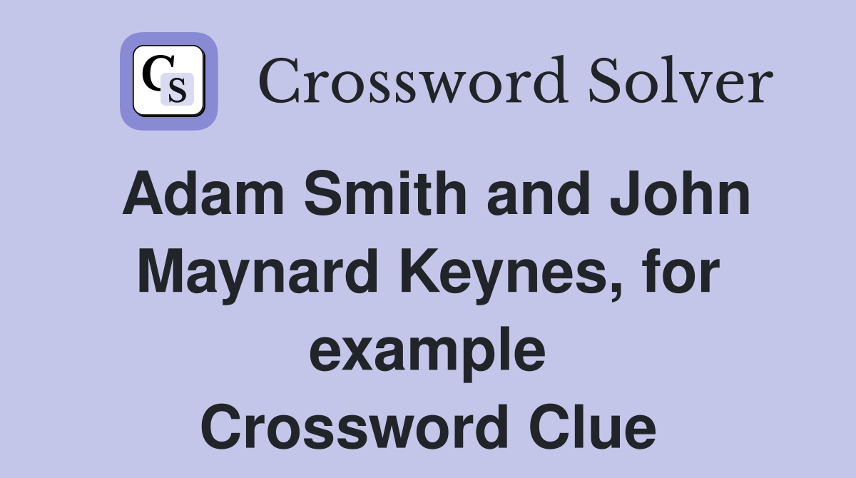 Adam Smith and John Maynard Keynes for example Crossword Clue