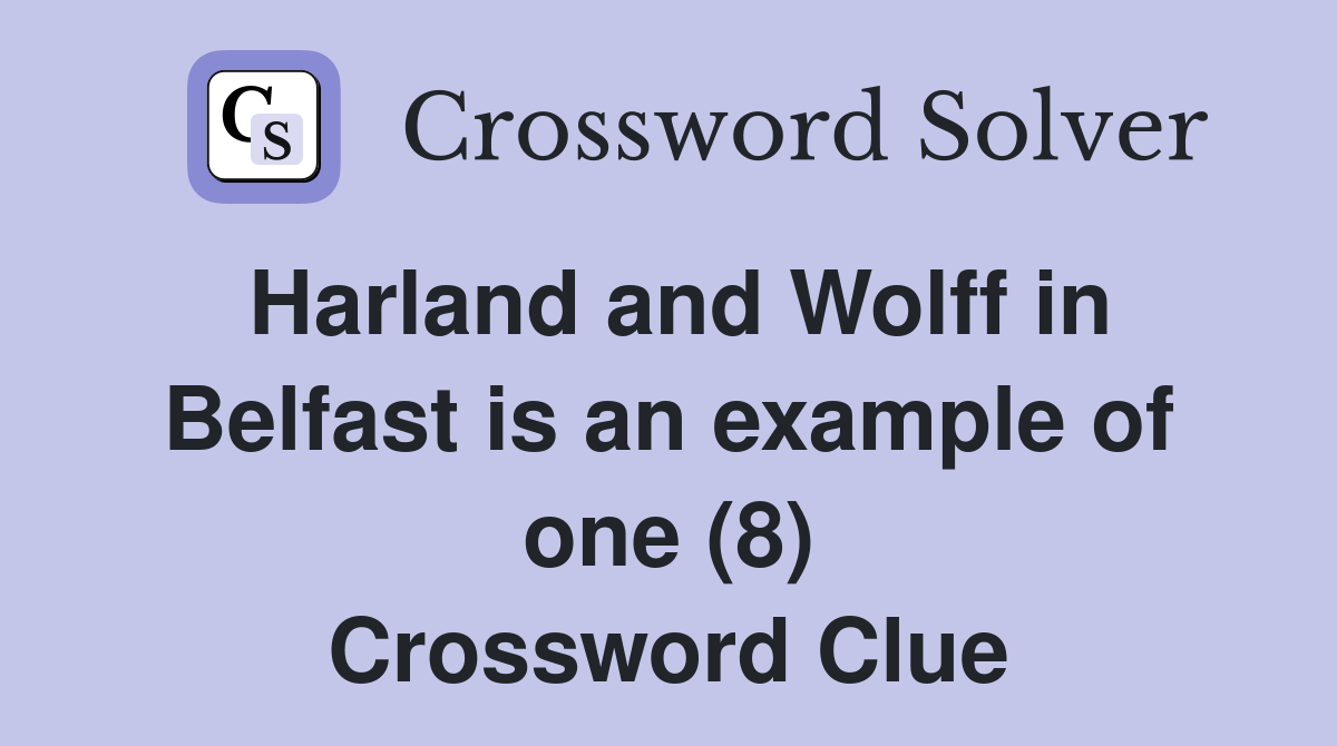 Harland and Wolff in Belfast is an example of one (8) Crossword Clue