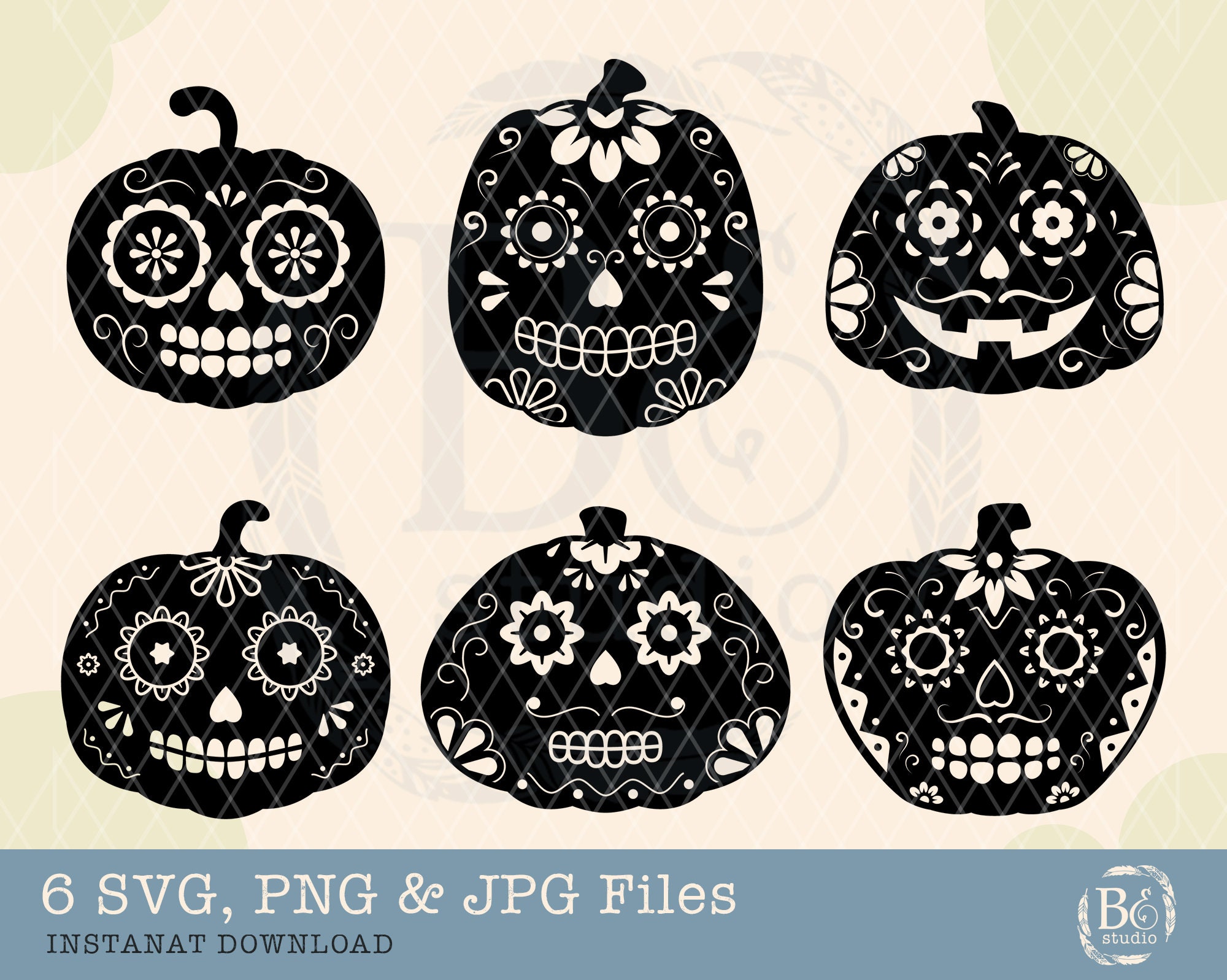 Pumpkin Sugar Skull Svg Day of the Dead Dia De Los Muertos Skull