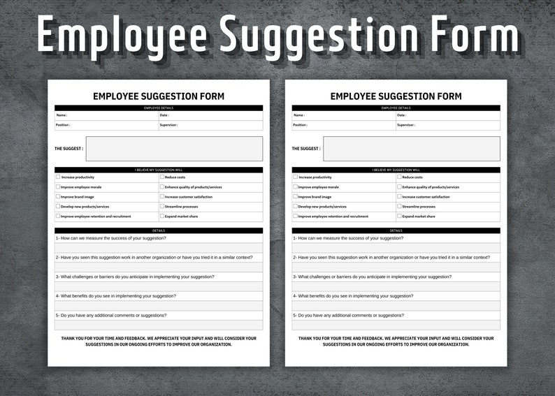 Employee Suggestion Form Editable Word Template Suggestion Etsy