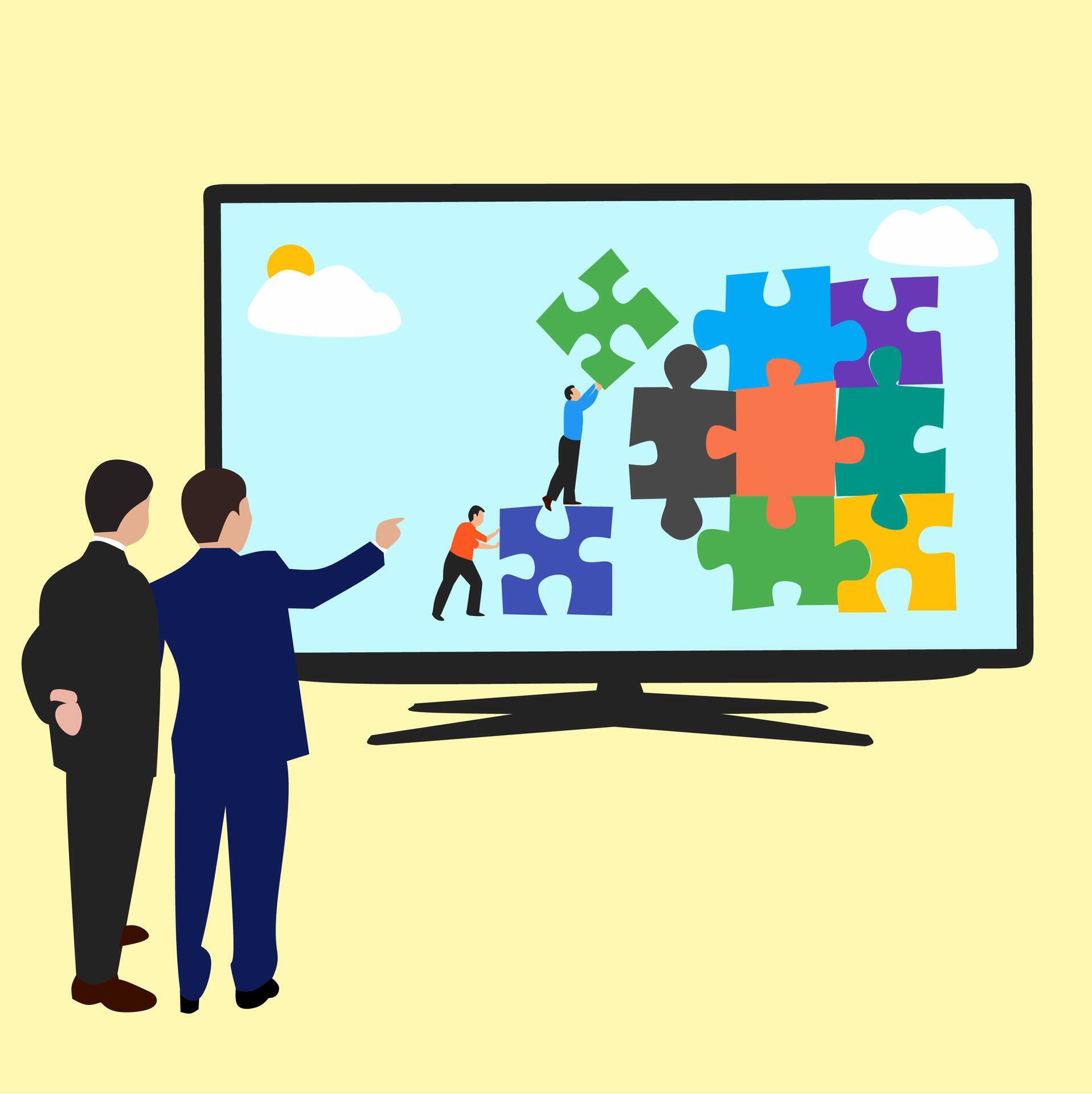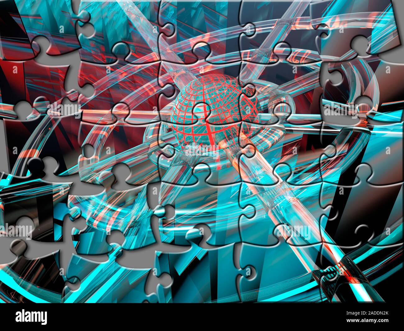 Network puzzle Illustration showing a nearly completed puzzle of a