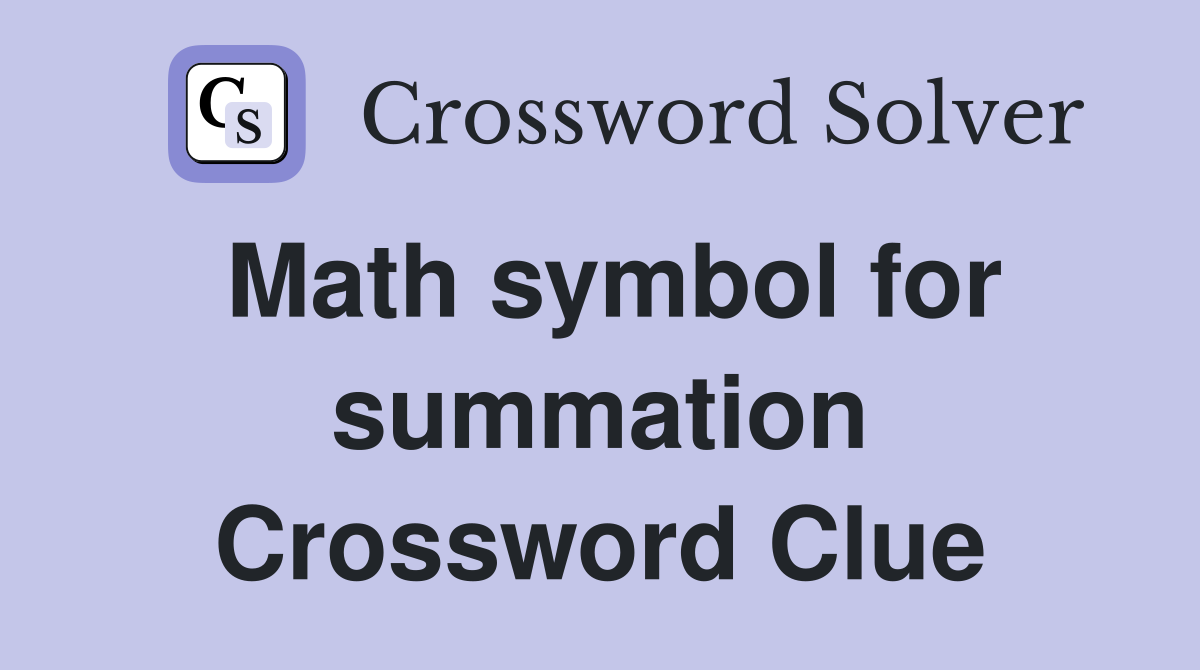 Here are some of the images for Summation Symbol In Math Crossword Clue that we found in our website database.