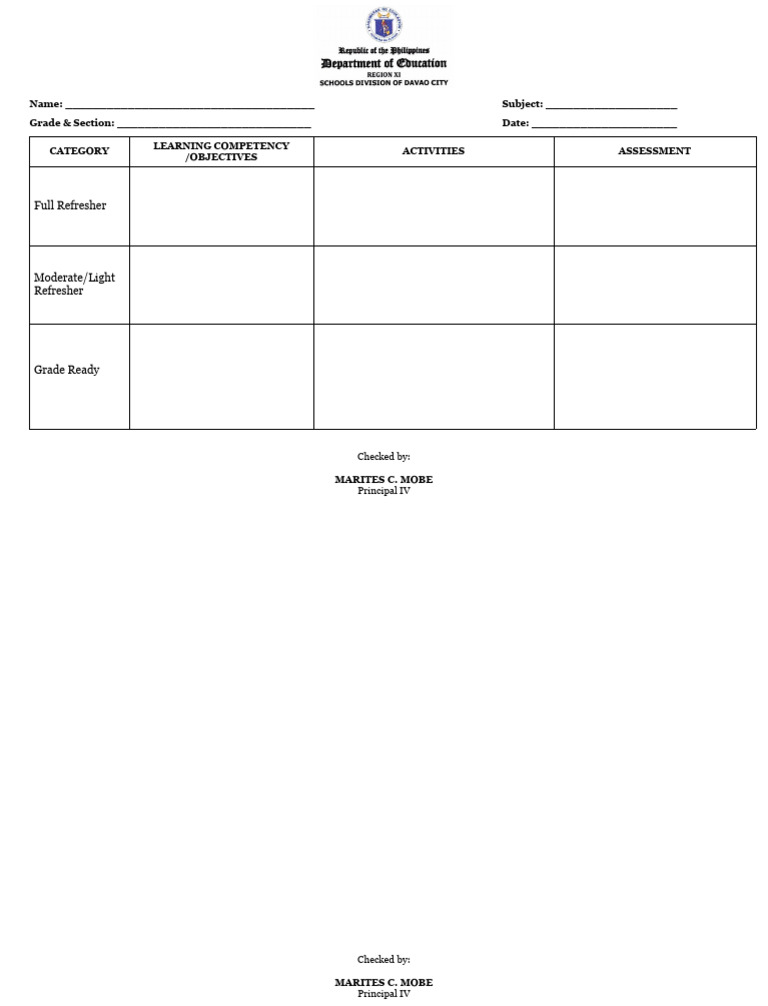 Summer Lesson Plan Template Printable Templates Free