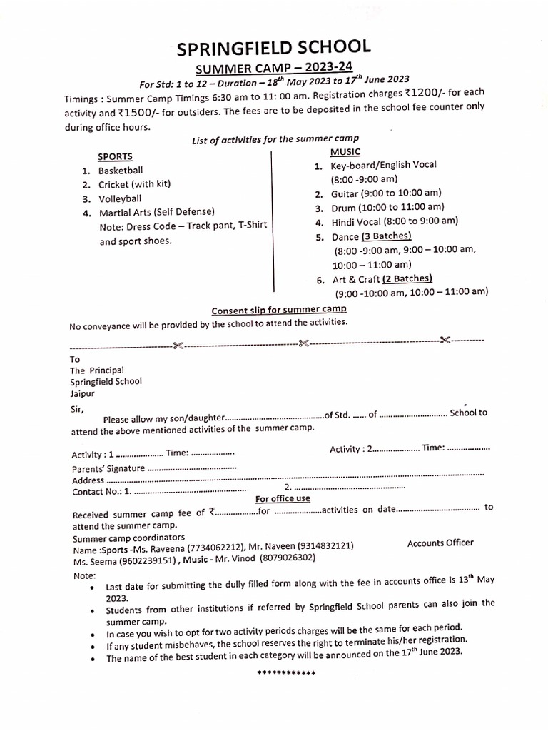 Summer Camp Form PDF