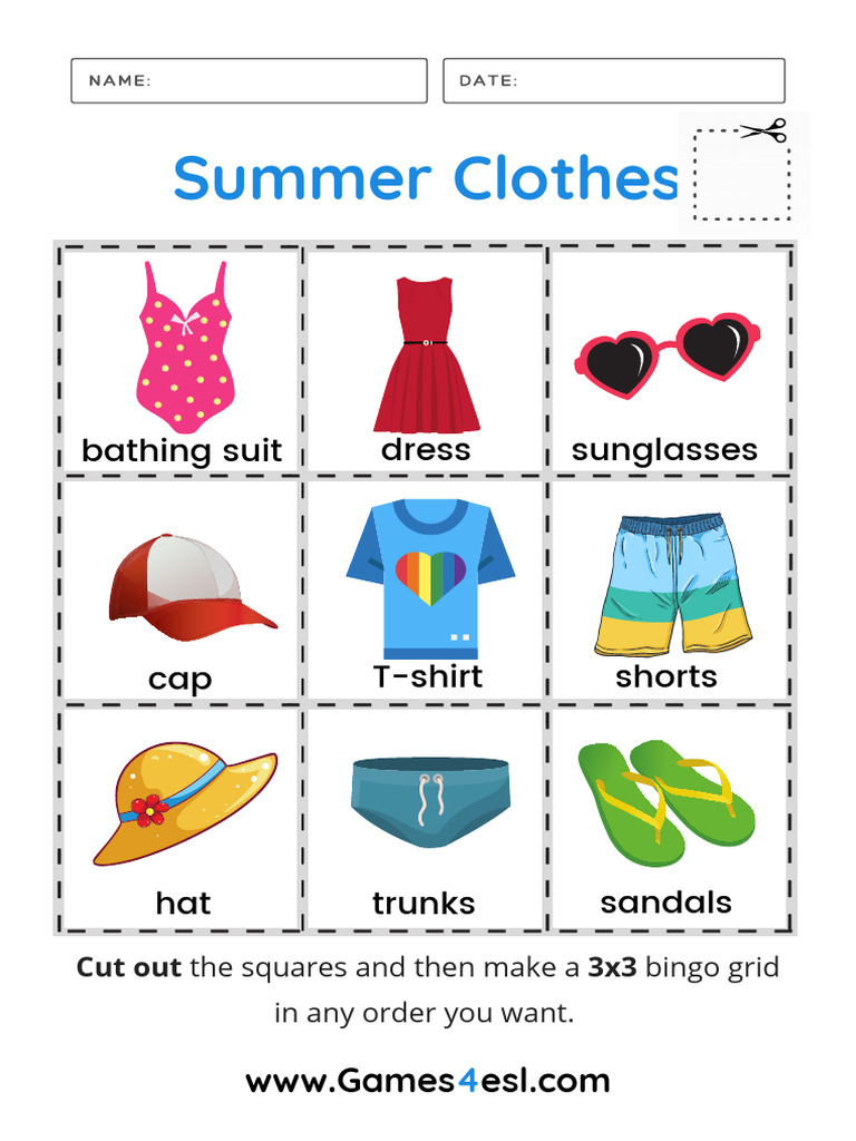 Summer Clothes Worksheets for English Learners • 7ESL