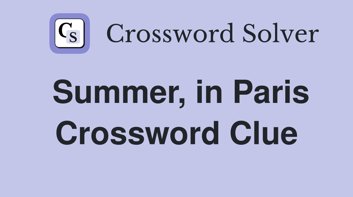 Summer in Paris Crossword Clue Answers Crossword Solver