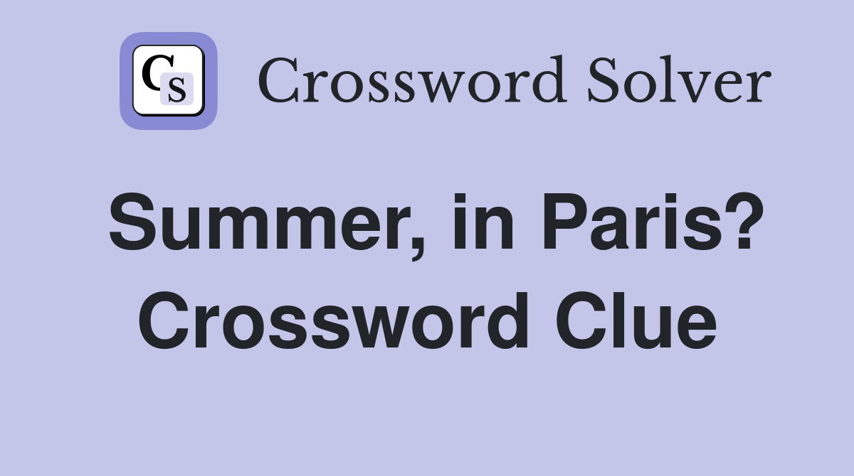Summer in Paris? Crossword Clue Answers Crossword Solver