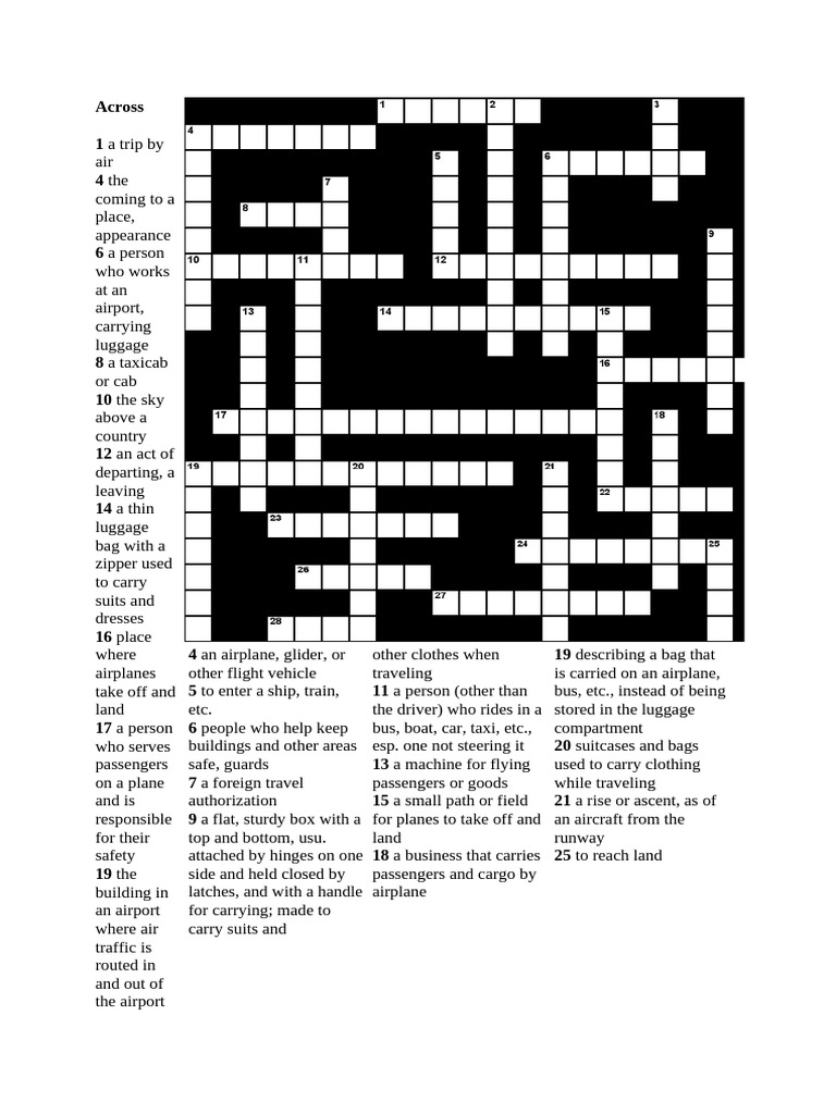 At The Airport Crossword Puzzle PDF Baggage Aviation