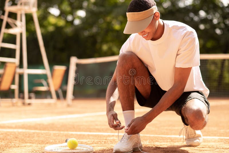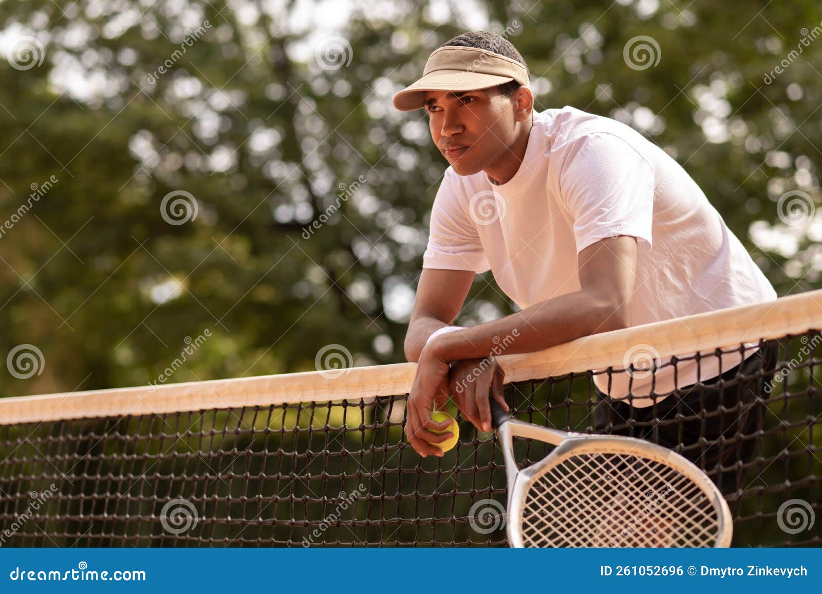 Young Man in Sun Visor at the Tennis Courts Stock Photo Image of