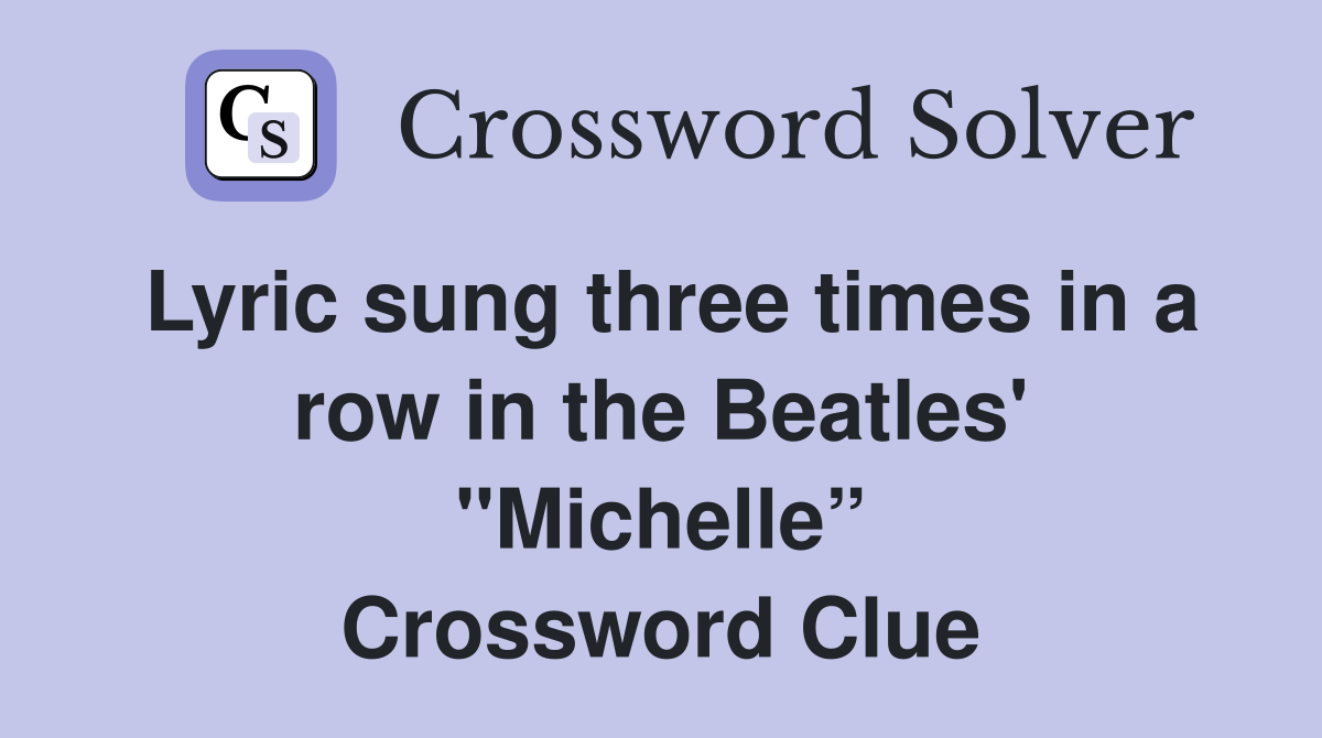 Lyric sung three times in a row in the Beatles #39 quot Michelle Crossword