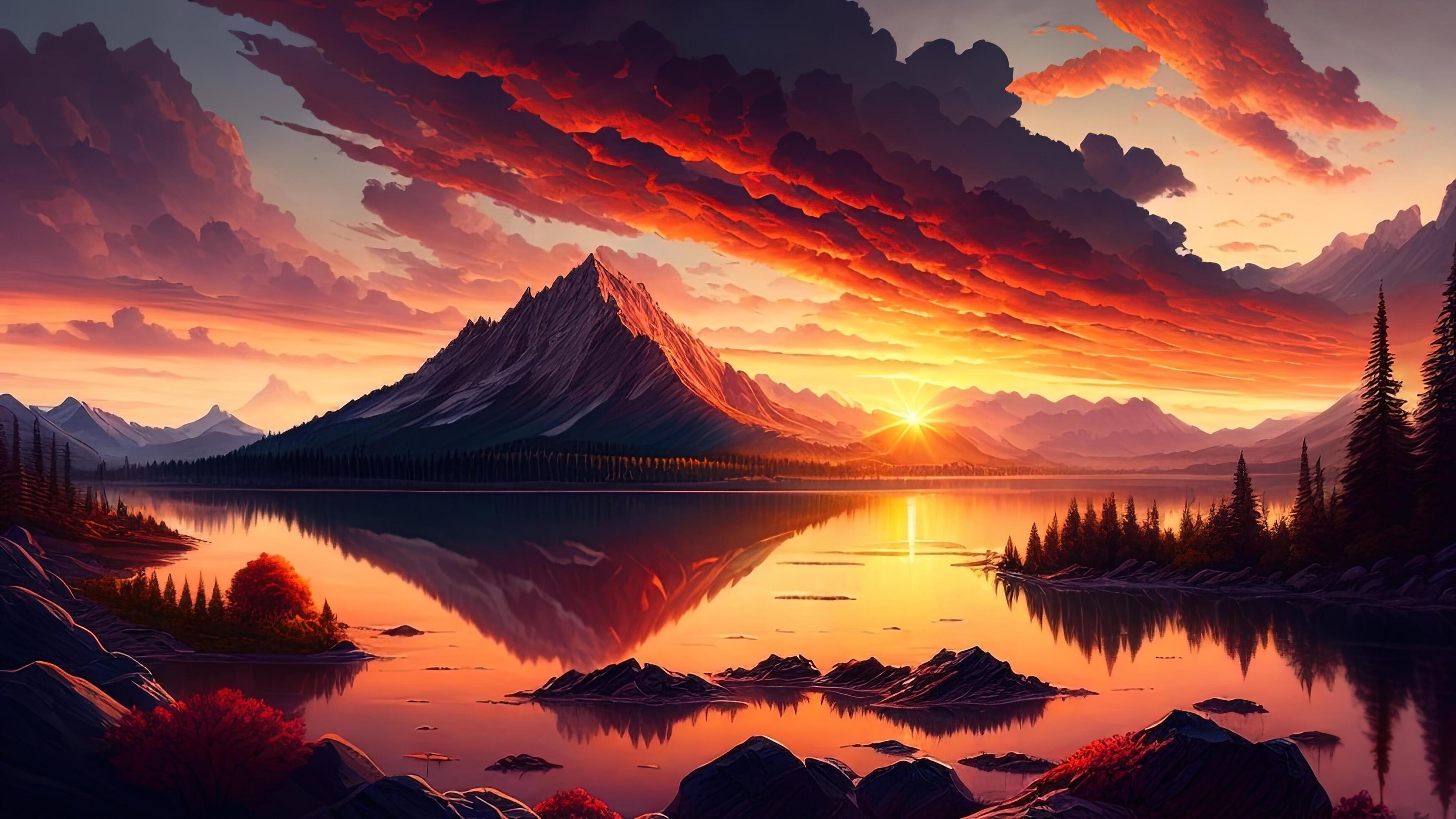 Sunset and mountains view wallpaper and background 17397081 Vector Art