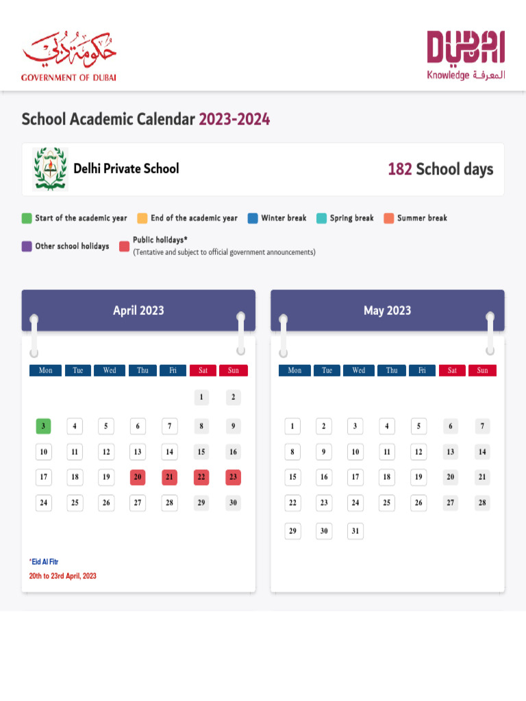Academic Calendar Delhi Private School PDF Educational