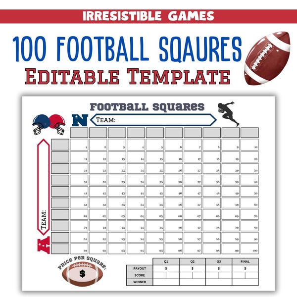 10 Square Football Pool TemplatePrintable