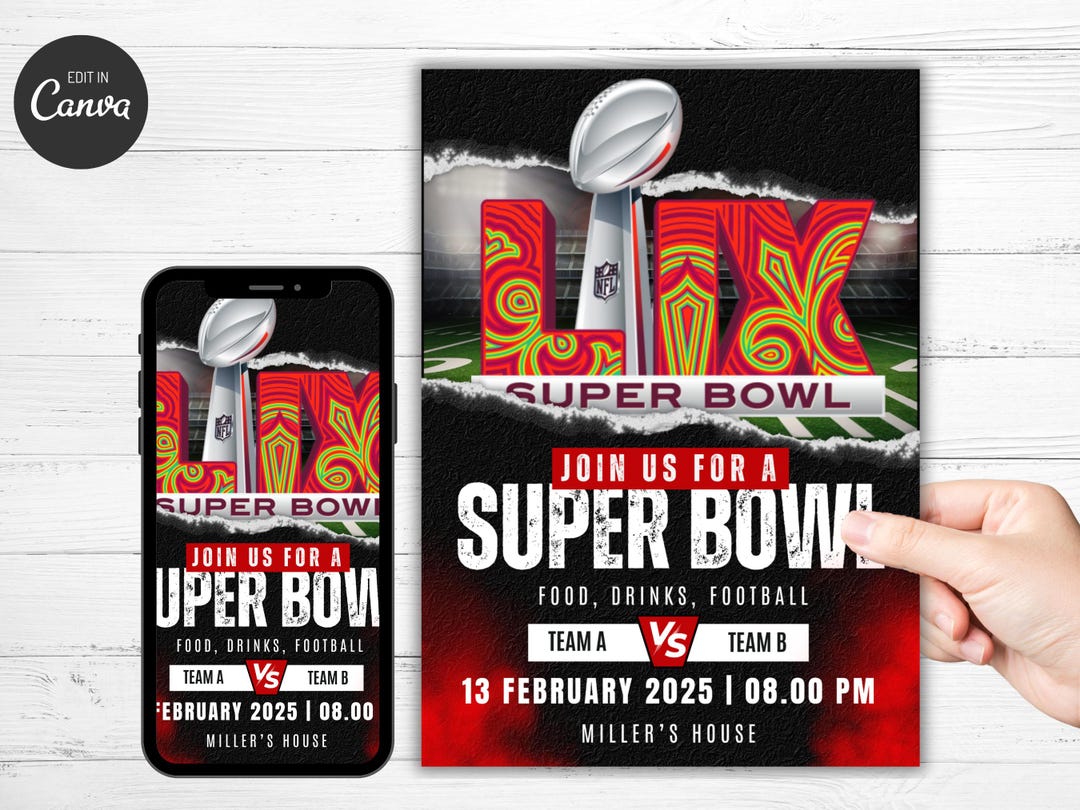 Super Bowl Invitation LIX Super Bowl Invite Watch Party Super Bowl NFL