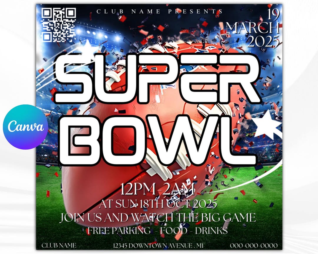Superbowl Football Flyer Template for Canva DIY Event Flyer Party